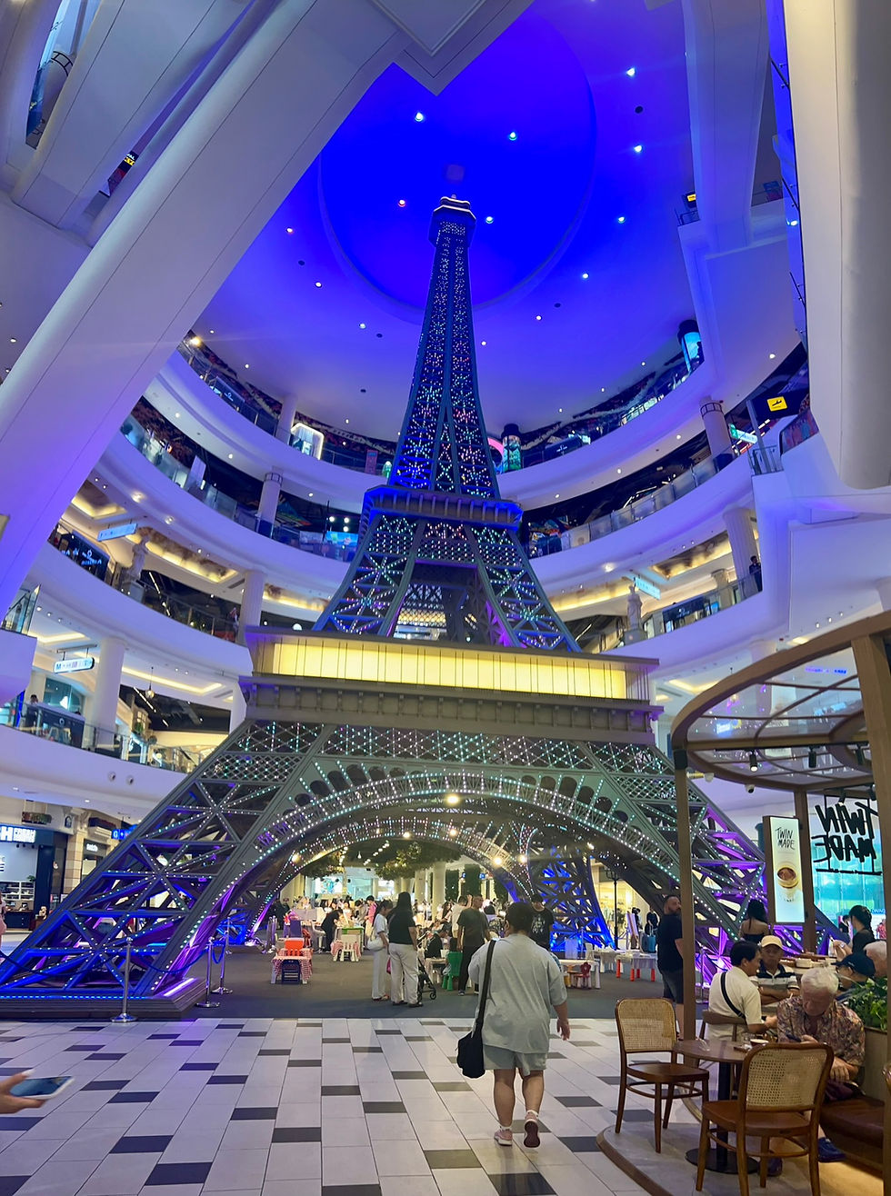 After the family left, I stayed in the mall to wiindow shop... and take more pictures. Terminal 21 is an internationally-themed bling mall with sculptures scaling five floors. There was a leaning tower of Pisa... an Eiffel Tower...