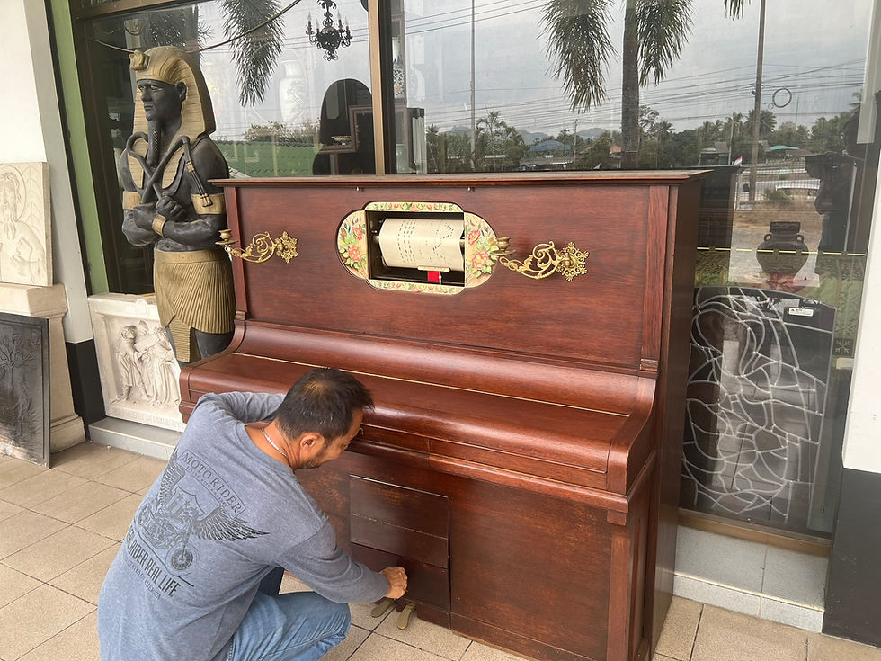 We walked next door and he showed me around his boss's shop. The store was full of gorgeous furniture and art and other items, like a player piano.