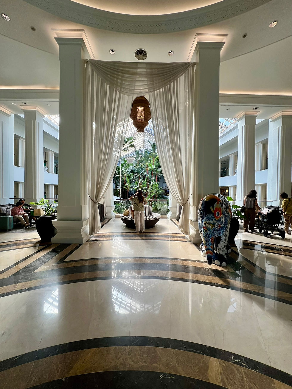 I visited the hotel. It was bling-bling. Dude, there was a waterfall in the lobby garden.